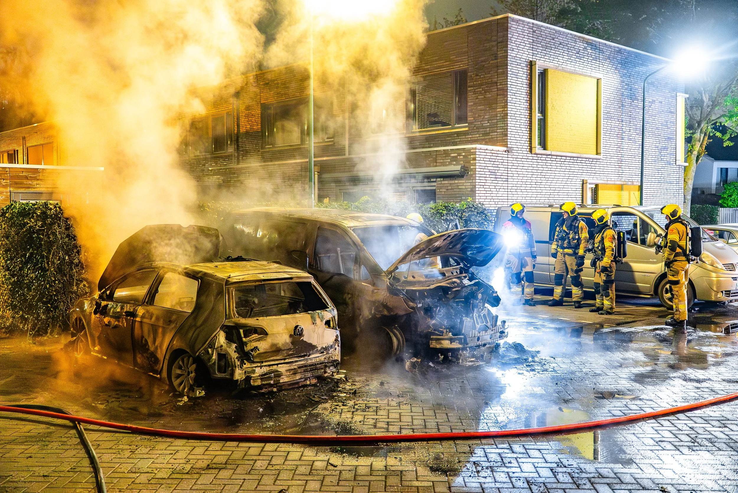 BERGHEM - In de vroege ochtend van donderdag op vrijdag hebben twee voertuigen in Berghem brand gevat. Een auto is volledig uitgebrand en een bestelbus heeft vooral aan de voorkant schade opgelopen. De brandweer van Berghem werd rond 4:25 gealarmeerd en was snel ter plaatse. Ondanks hun snelle reactie, konden ze de brand niet voorkomen en is de schade aanzienlijk. Het is nog onduidelijk hoe de brand is ontstaan, maar brandstichting wordt niet uitgesloten. Buurtbewoners hebben mensen horen praten buiten, net voordat de brand werd ontdekt.