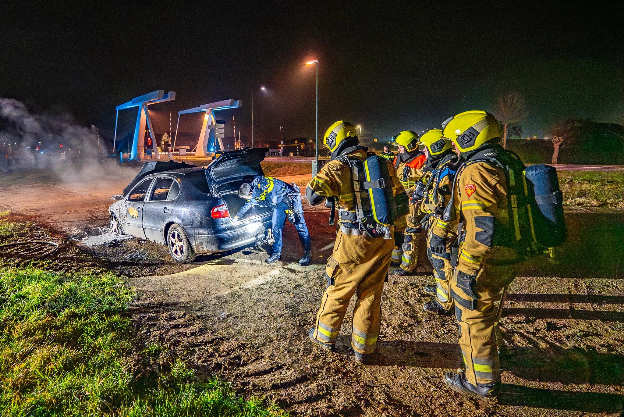 Macharen – Donderdagavond 5 november, net voor middernacht, zijn de hulpdiensten gealarmeerd voor een autobrand op een parkeerterrein aan de Dorpenweg in Macharen, naast de Macharense Brug.
