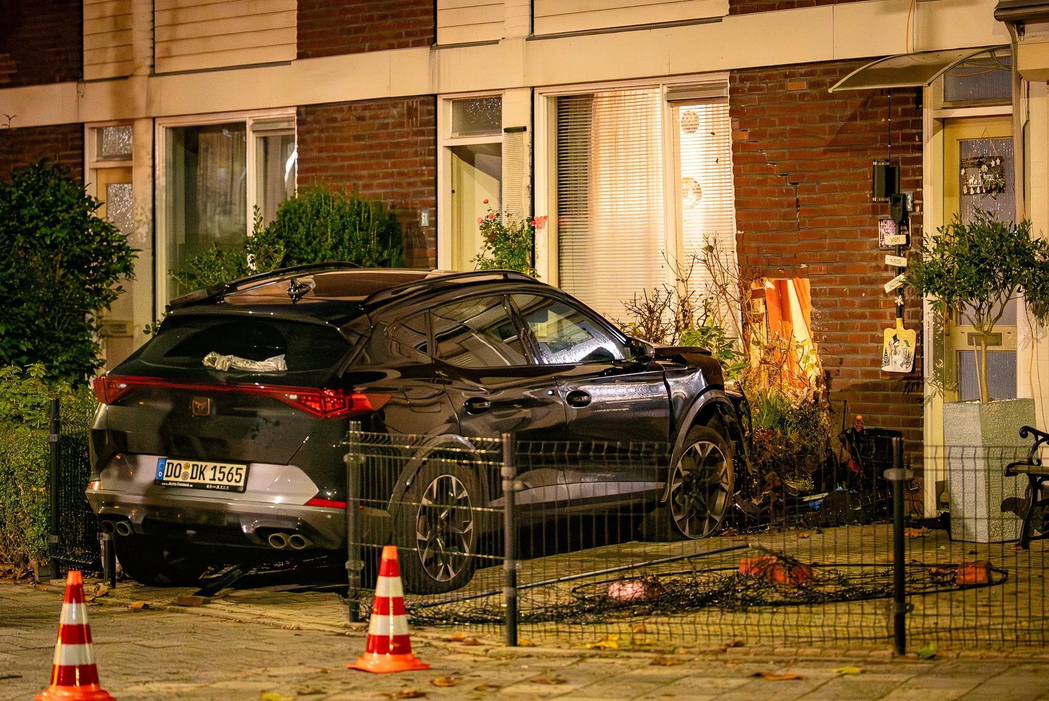 NIJMEGEN - Een auto met een Duits kenteken is midden in de nacht tegen een huis aangereden aan de Nijenrodestraat. Het voertuig kwam vanaf de Loevesteinstraat en botste tegen een hoekwoning, waarna het tot stilstand kwam bij de naastgelegen woning. De inzittenden renden weg toen de bewoners naar buiten kwamen.