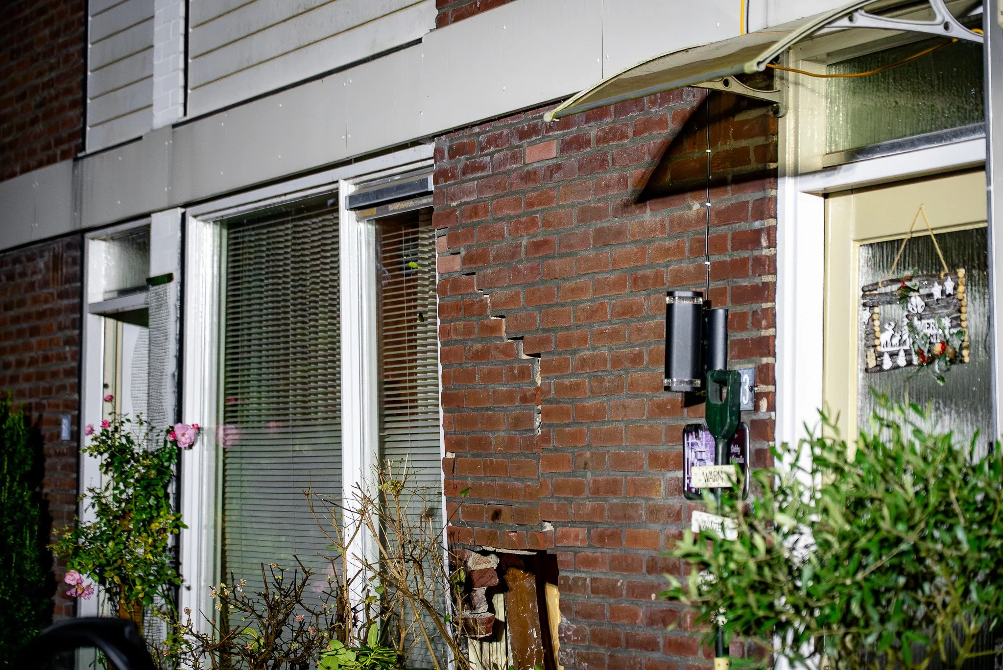 Door de klap is een deel van de muur van de woning ingestort en ontstond een grote scheur. Ook het tuinhek en de beplanting zijn vernield.
