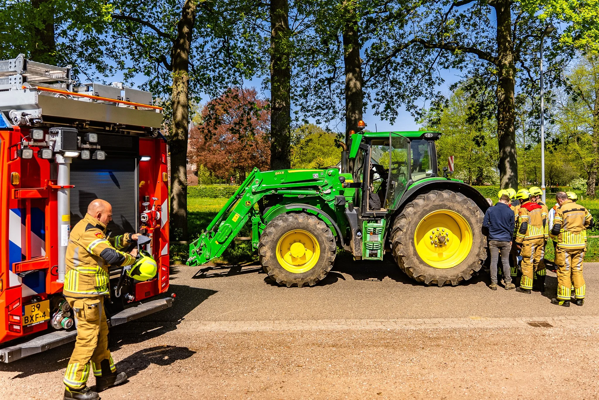 HERNEN - Donderdagmiddag rond 12:30 uur heeft er een ongewone aanrijding plaatsgevonden op de Dreef in Hernen, gemeente Wijchen. Een tractor stopte om ruimte te maken voor een passerende vrachtwagen. Een oudere man op een scootmobiel zag dit te laat en botste tegen de tractor. De scootmobiel kwam vast te zitten tussen de tractor. De brandweer uit Wijchen kwam met spoed ter plaatse met een tankautospuit en een speciaal hulpverleningsvoertuig. Ook kwam er een ambulance. De brandweer heeft de man en zijn scootmobiel losgemaakt en met een hydraulische schaar het stuur losgeknipt. Hierdoor kon de man met hulp van het ambulancepersoneel zelf op de brancard gaan liggen. Hij is in de ambulance gecontroleerd. Tijdens de aanrijding was de weg tijdelijk afgesloten. De tractor had weinig schade, maar de scootmobiel is helaas helemaal kapot. Het letsel lijkt mee te vallen, maar het is onduidelijk of de man naar het ziekenhuis is overgebracht.