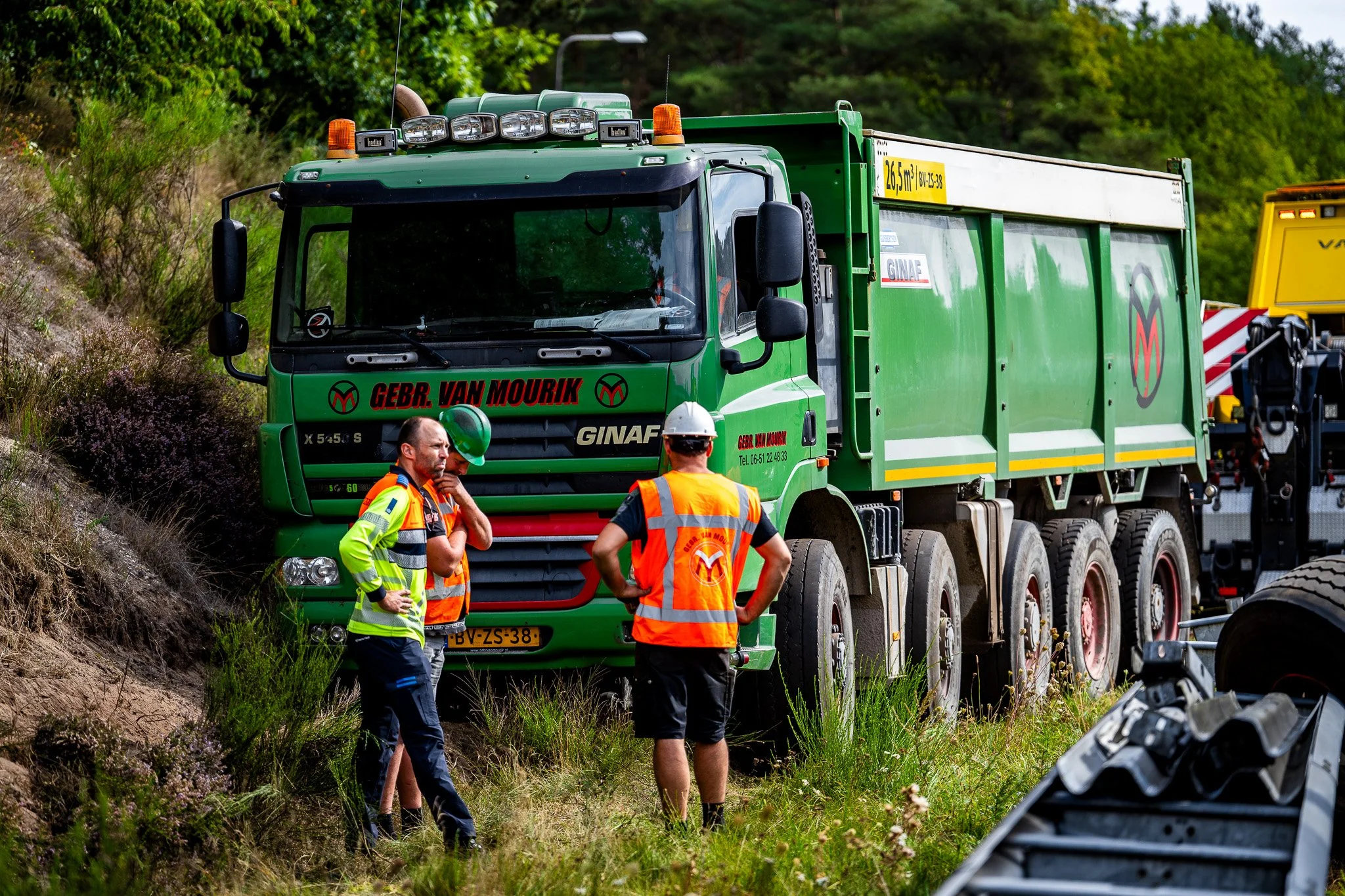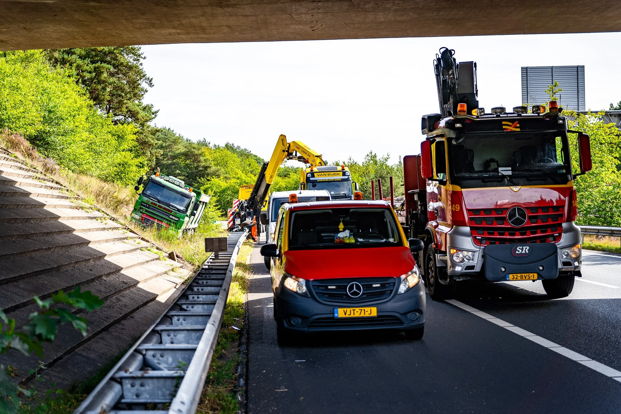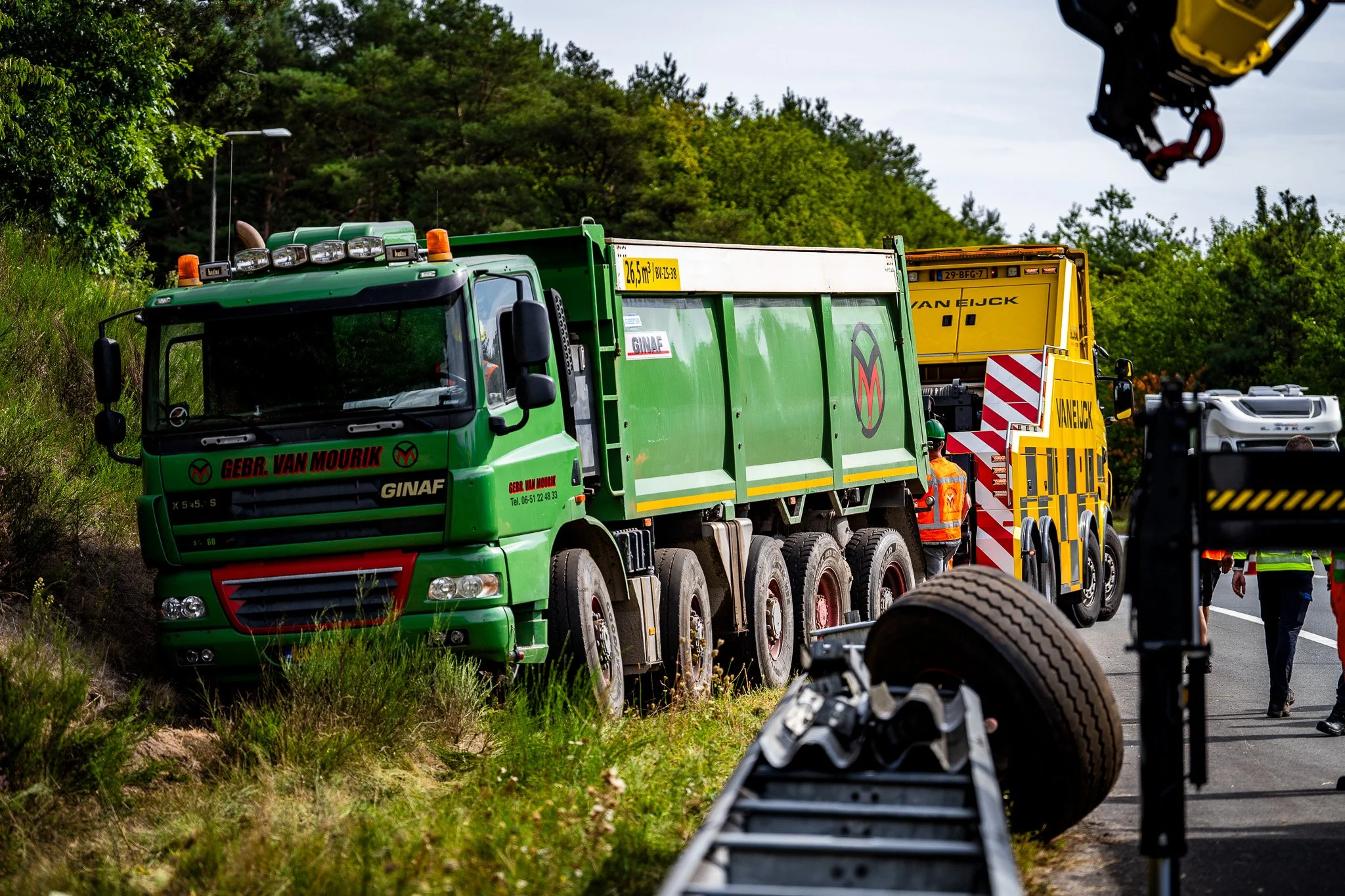 WOLFHEZE – Bij knooppunt Grijsoord is in de nacht van dinsdag op woensdag een vrachtwagen in de berm beland. De kiepwagen raakte door een nog onbekende oorzaak van de weg en kwam na een stuk vangrail te hebben geraakt tot stilstand in de berm.