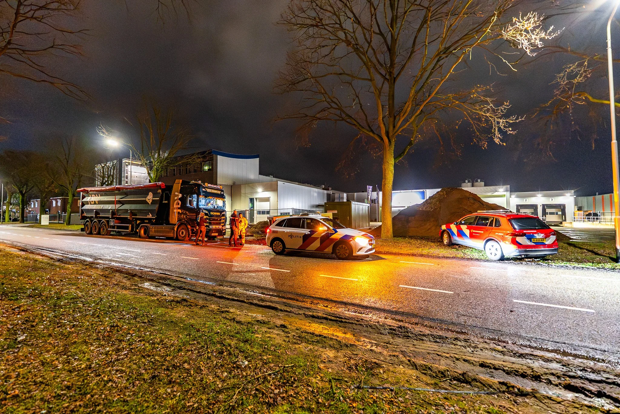 OSS – Donderdagavond, net voor het ingaan van de nacht, heeft een vrachtwagen een onbekende vloeistof gelekt op de Lekstraat in Oss. De chauffeur ontdekte het lek en zette het voertuig direct stil.